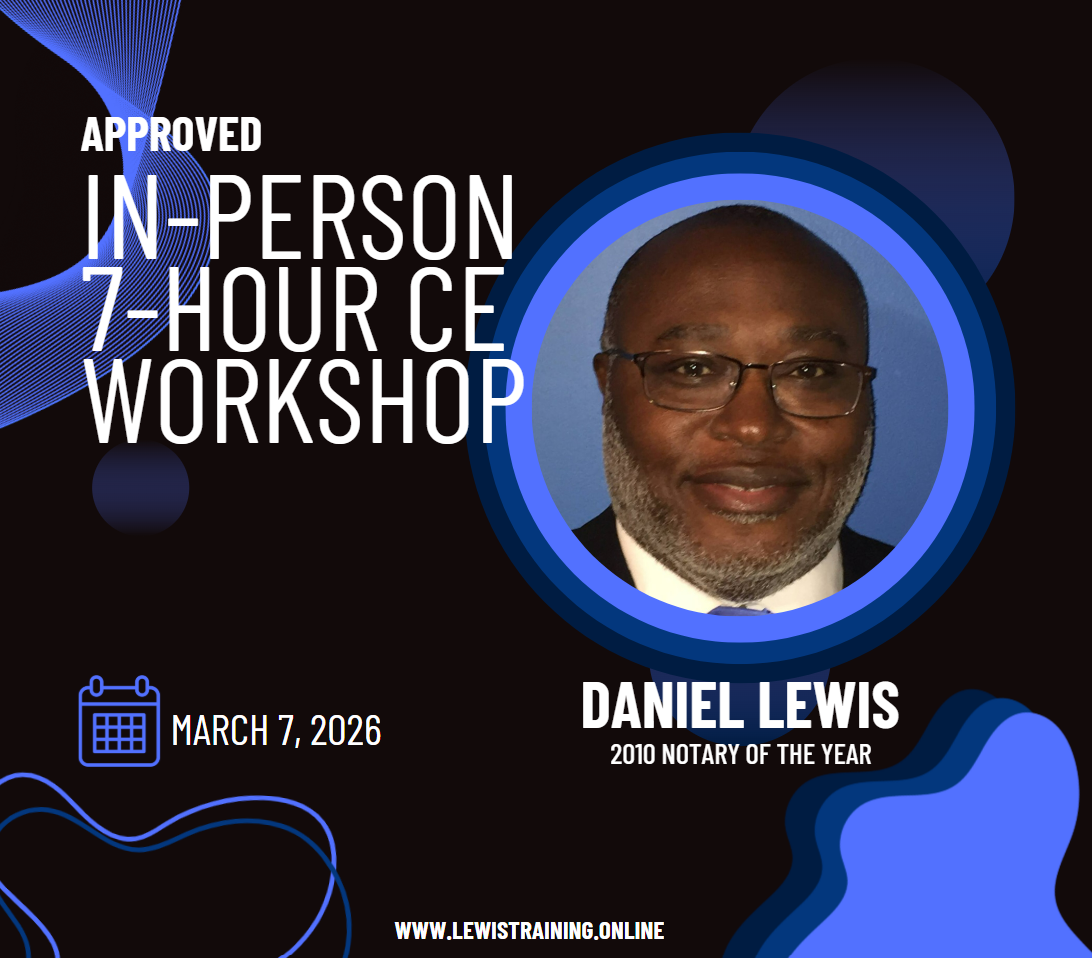 Approved One Day 7-Hour CE Workshop happening on Saturday, March 7, 2026, from 9:15 am – 4:15 pm. This workshop meets the requirements set by the Indiana Department of Insurance. This one-day workshop covers Professional Notary and Ethics and the Signing Professional – SPW. This is an In-person Workshop.
